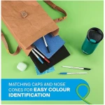 • Bright ink colours jump off the page, with matching caps and nose cones for easy colour identification