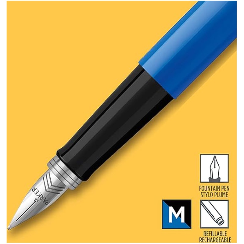 Parker Jotter Originals Fountain Pen | Classic Blue Finish | Medium Nib | Blue & Black Ink