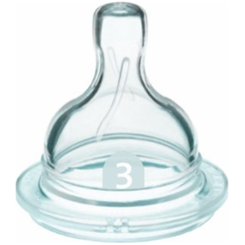 - Soft, silicone teat with a medium flow, suitable for babies aged 3 months and over