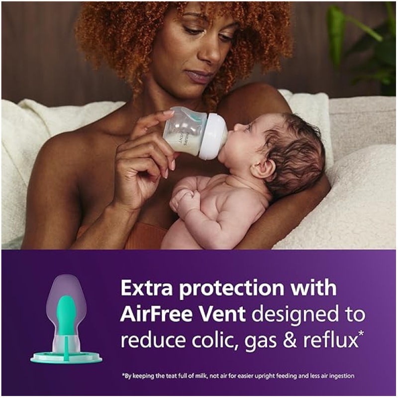 - AirFree vent: This Avent Bottle prevents air from getting into your little one’s tummy whilst feeding upright.