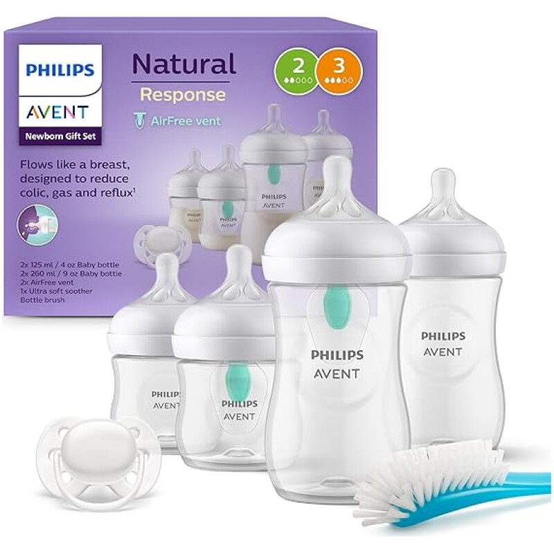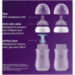 Philips Avent AirFree Vent Baby Bottle Newborn Gift Set – 4 Baby Milk Bottles with Air-Free Vent, Ultra-Soft Pacifier and Bottle Brush, Babies Aged 0-12 Months+ (Model SCD657/11)
