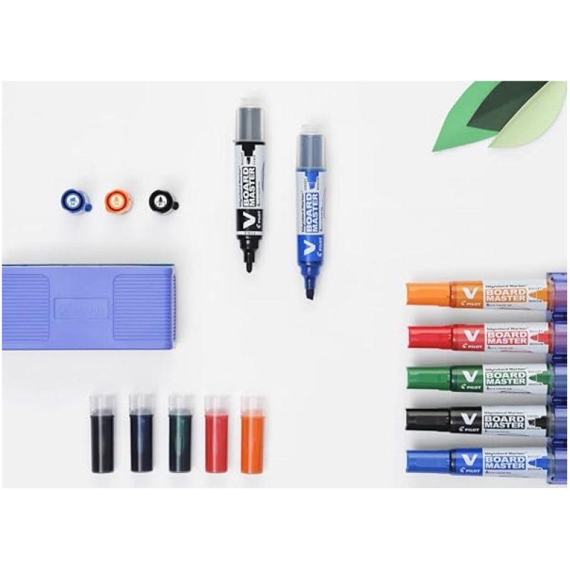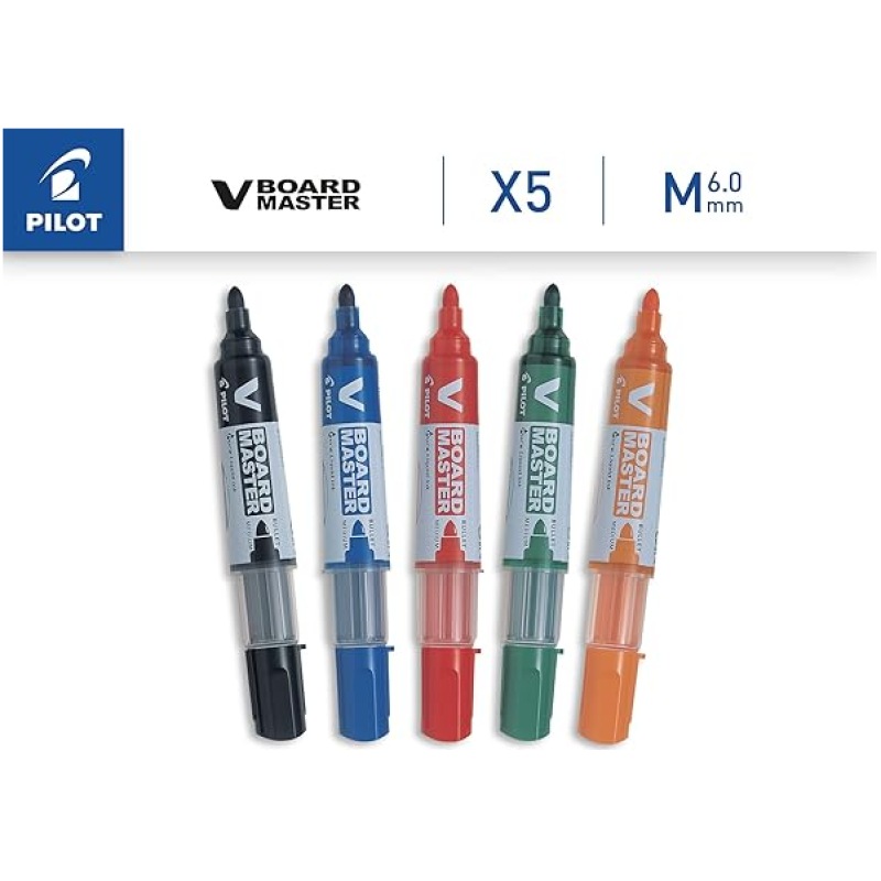 Pilot Begreen Recycled V Board Master Whiteboard Marker Bullet 6.0 mm Tip – Black/Red/Blue/Green/Orange, Wallet of 5