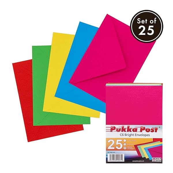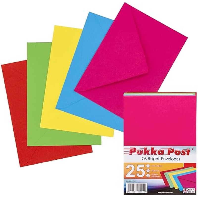 Pukka Pad, Pukka Post & Packaging Gummed Envelopes – Pack of 25, Ready-to-Seal, Durable 100GSM Postal Envelopes for Letters, Invitations, and Other Mail – 114 x 162mm, Size C6, Brights