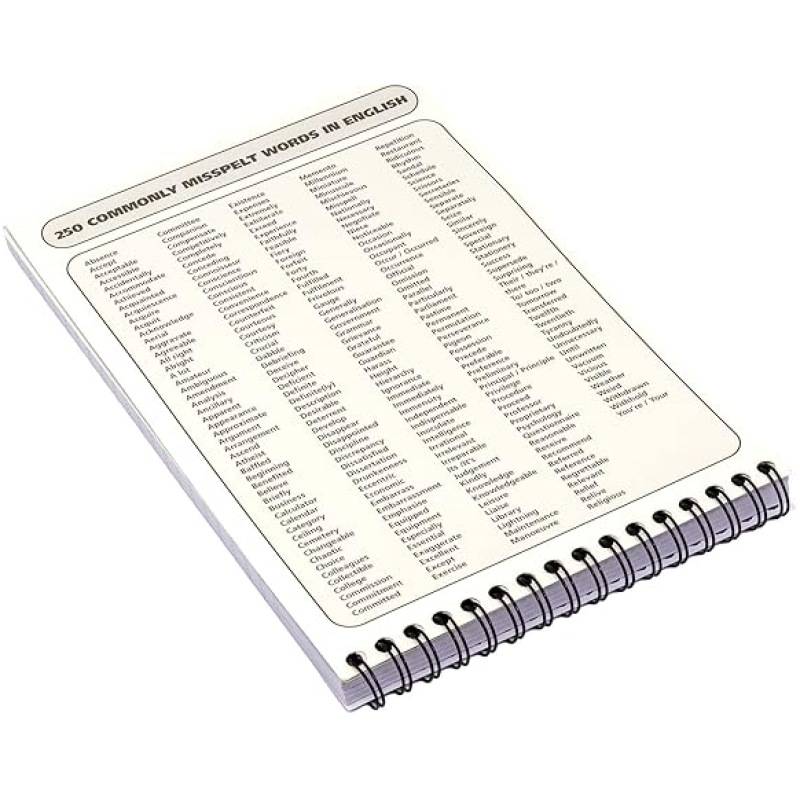 - Become Error-Proof: Introducing spell check without the computer; these notepads feature a page of 250 commonly misspelt English words to make sure you don?t make mistakes
