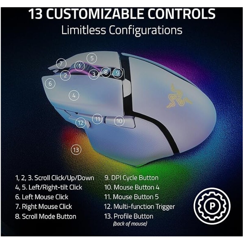 Razer Basilisk V3 Pro – Customizable Wireless Gaming Mouse HyperScroll Tilt Wheel (Focus Pro 30K Optical Sensor, 13-Zone Chroma Lighting, 10+1 Programmable Buttons) White