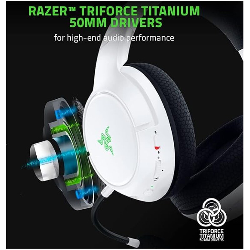 - Razer TriForce Titanium 50mm Drivers for high-end audio performance: With titanium-coated diaphragms for added clarity, our cutting-edge drivers can tune highs, mids, and lows separately—producing brighter, clearer sound with richer trebles and more powerful bass.
