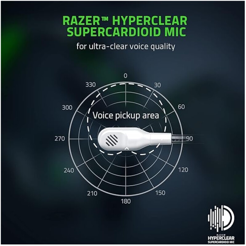 - Razer HyperClear Cardioid Mic for enhanced voice clarity: The bendable mic has improved housing and pickup for amazing voice capture that suppresses noise from the back and sides—supported by mic monitoring and game/chat balance to ensure optimal levels.