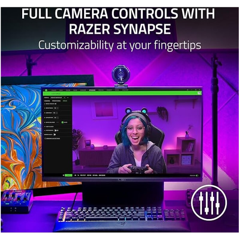 • Wide-angle lens with adjustable FOV to control how much to capture for your audience. Find the right amount of visual space you need to display your showmanship, with a large aperture, wide-angle lens that allows for three field-of-view options selectable via Razer Synapse.