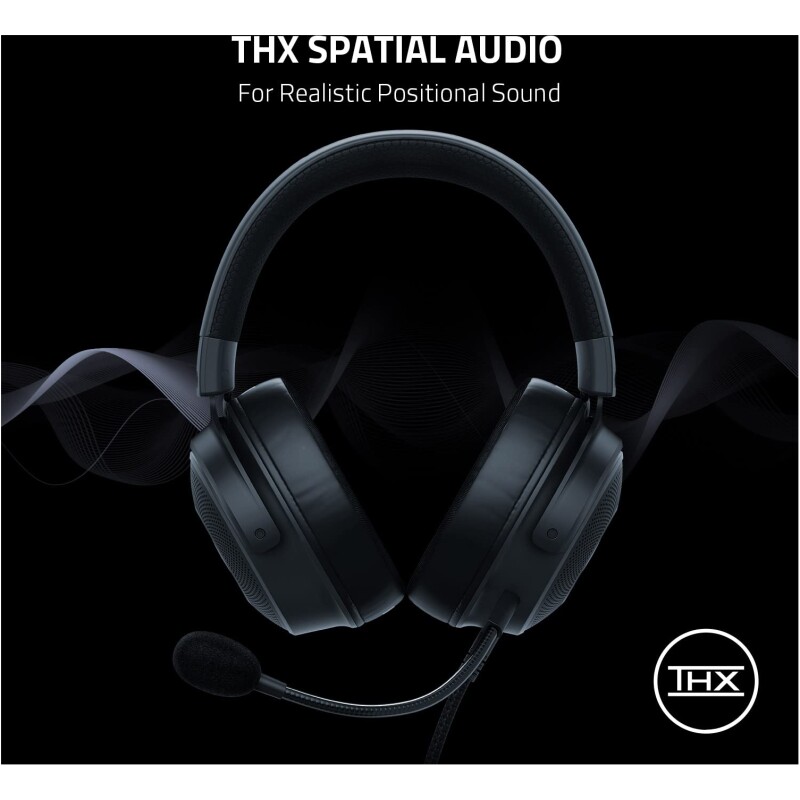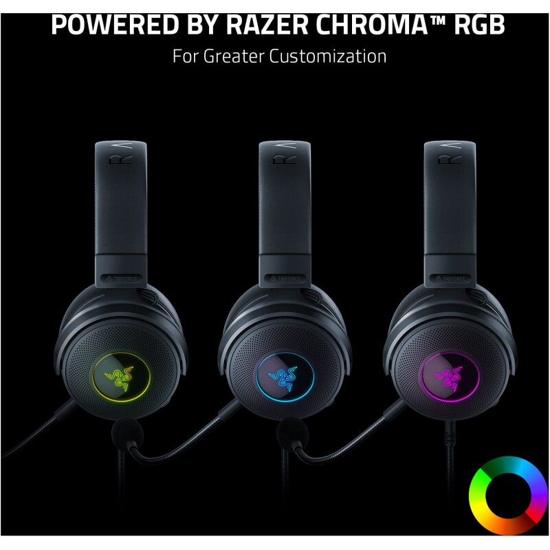 Razer Kraken V3 – Wired USB Gaming Headset with Razer Chroma RGB (TriForce 50 mm Drivers, THX Spatial Audio, HyperClear Cardioid Mic, Chroma RGB) Black