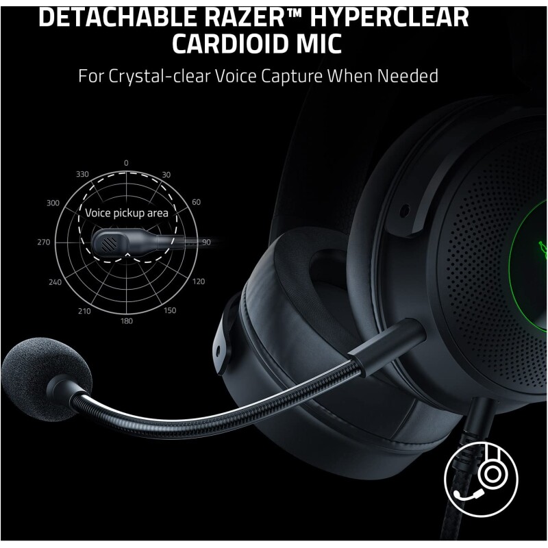 - Detachable Razer HyperClear Cardioid Mic for Crystal-clear Voice Capture When Needed. Ensure you’re heard loud and clear with a mic that’s fine-tuned to suppress background noise for enhanced voice capture during gaming.