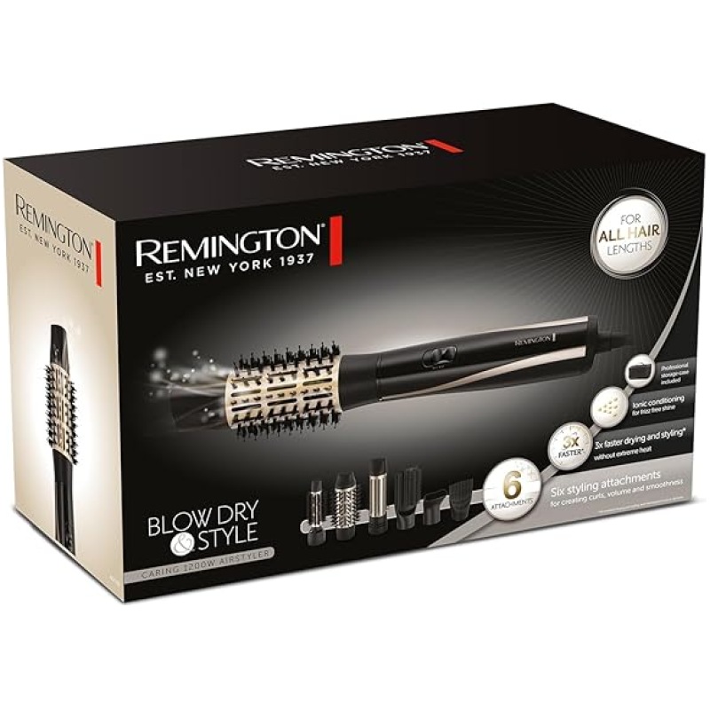 Remington Blow Dry & Style Air Styler – For All Hair Lengths (6 Attachments, 25mm, 38mm, 50mm Brush, Firm Paddle Brush, Concentrator, Root Boost, 2 Heat & 2 Speed Settings, Swivel Cord, 1200W) AS7700
