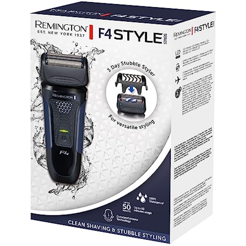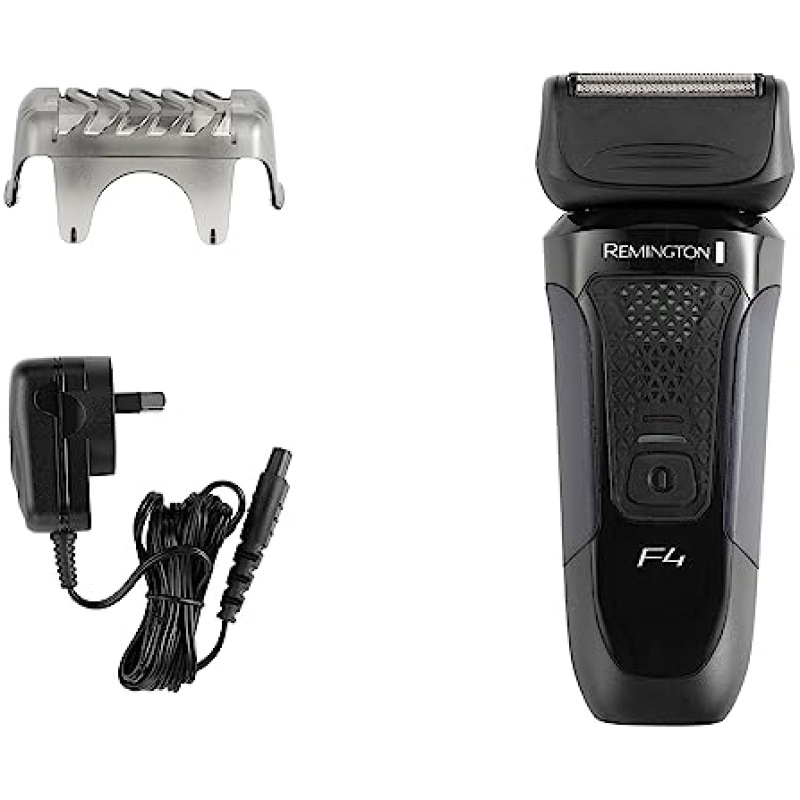 Remington F4 Mens Electric Foil Shaver (Dry Shave, Pop up detail trimmer, 50min usage, 4hr charge, Cordless, Worldwide voltage adjustment, Head guard, Cleaning brush) F4002