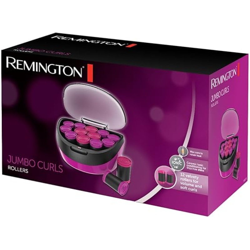 Remington Heated Hair Rollers (Set of 12), Ceramic and Ionic Technology, Wax core, 12 pins and clips included, pink/black) H5670