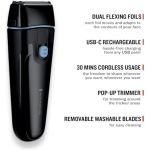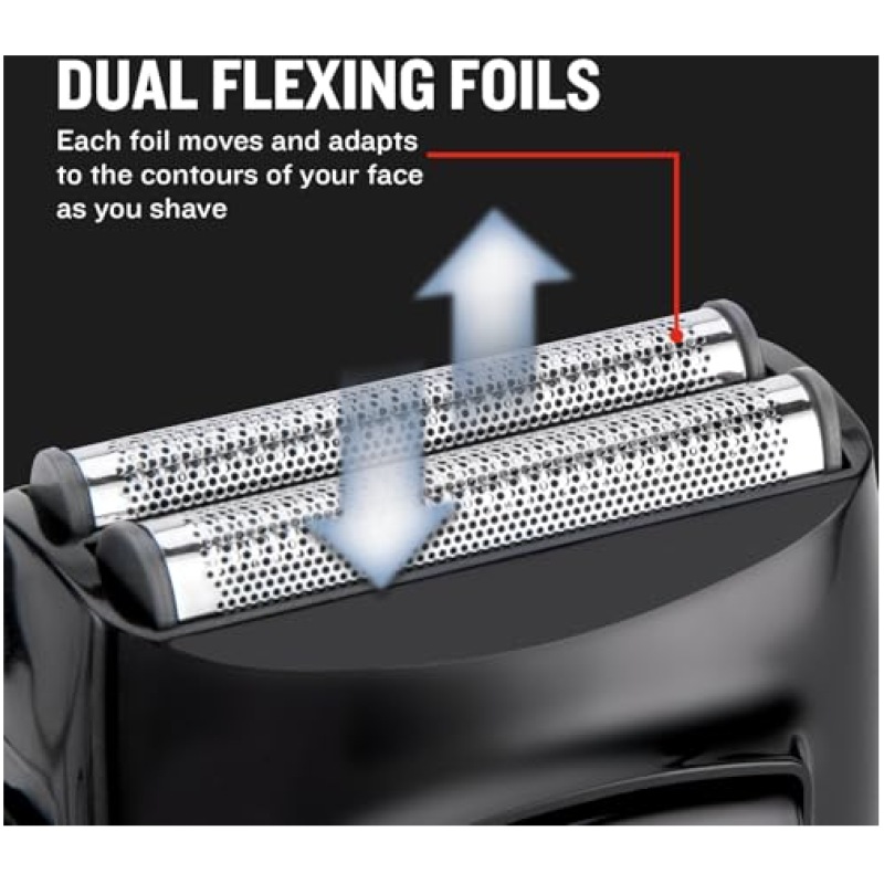 - FLEXIBLE FOILS – Men’s shaver with dual independent flexing foils that adapt to the facial contours and washable blades.