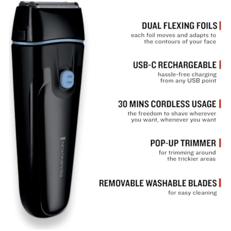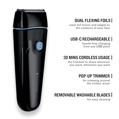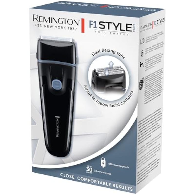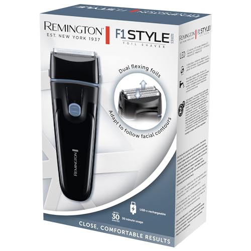 Remington Mens Electric Foil Shaver F1 (Pop-up Trimmer, 30 min Usage, Removable, Washable Blades, Cordless Usage, USB-C Charging, 100% Waterproof) F1000