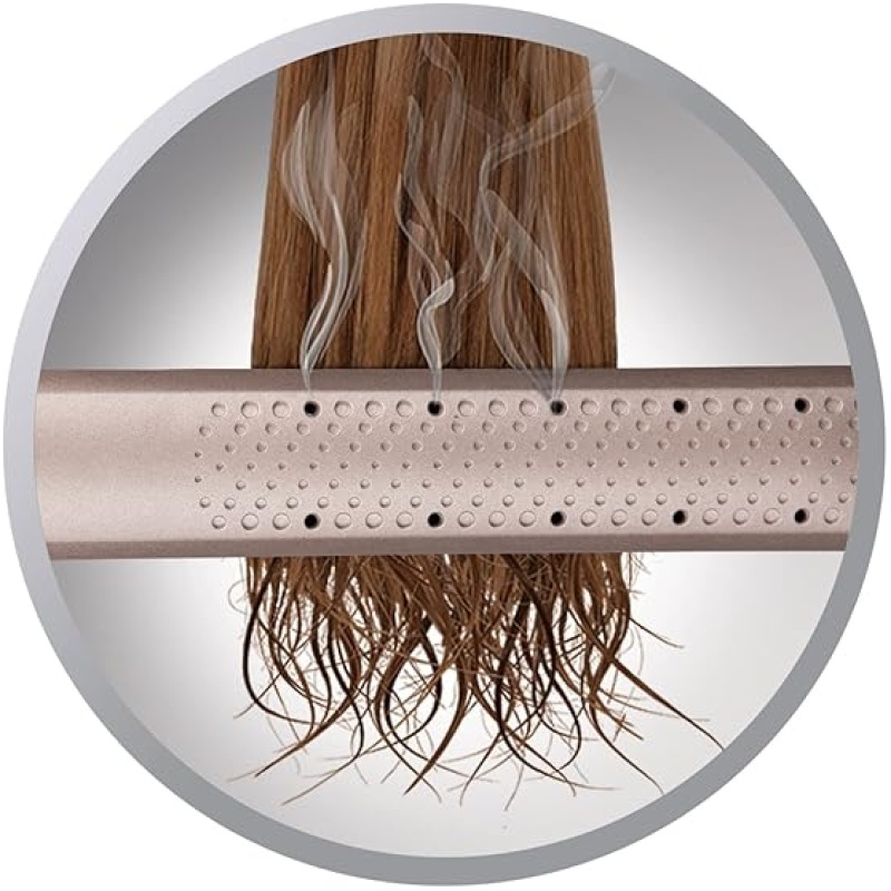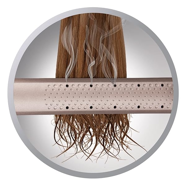 - Exclusive Venting System – Quickly removing and evaporating excess water with every stroke and releasing it through the outer housing surrounding the plate; this dries your hair whilst you straighten.