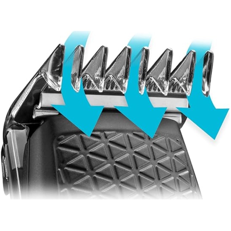 - Intuitive Precision Control Dial Wheel – Choose from 22 Cutting Lengths with Increments from 0.5mm (without comb) to 24mm.