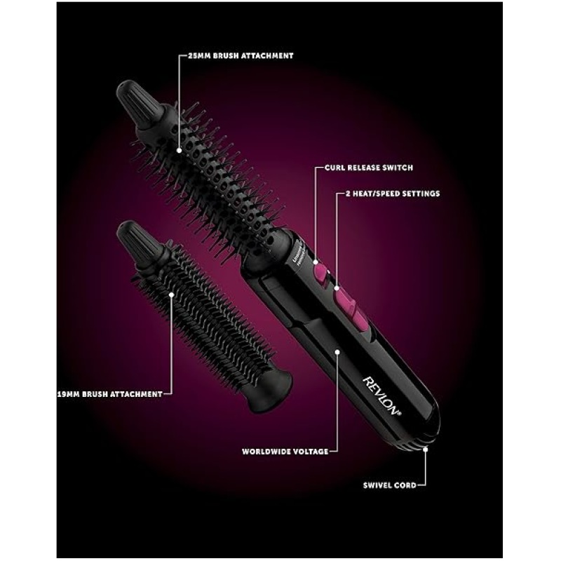 - 2 brush attachments – 19mm: creates tighter curls and waves in shorter hair styles & 25mm: creates full curls and waves in all air styles