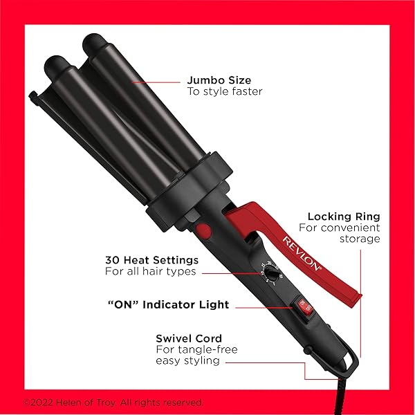 Revlon Wave Master Jumbo Waver (Three-Prong Jumbo Barrels, Tourmaline Ceramic Coating, 30 Heat Settings Up to 190?C) RVIR3056UK