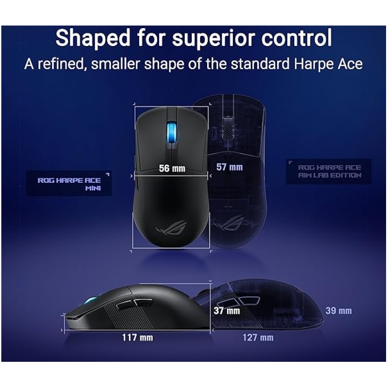 ROG Harpe Ace Mini – Ultra-Light 48g Wireless Gaming Mouse – 42,000 DPI ROG Aimpoint Sensor, Three-Mode Connectivity, Five Programmable Buttons with Aim Lab Settings Optimizer