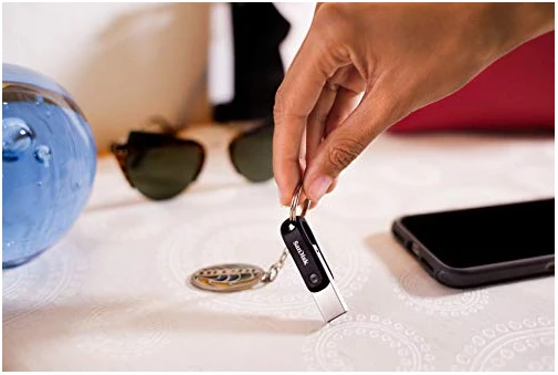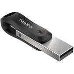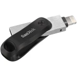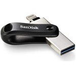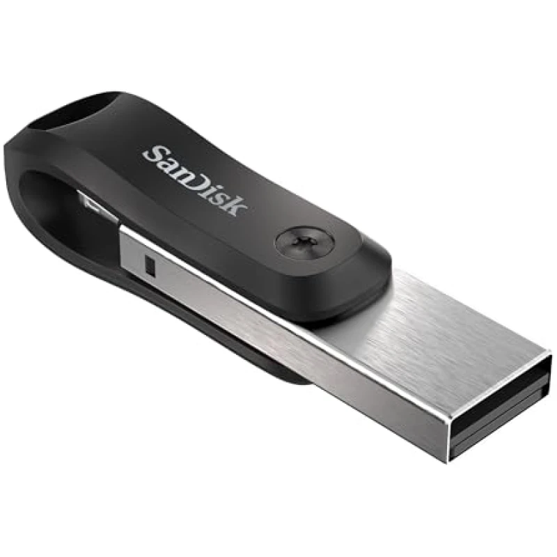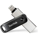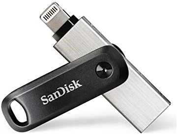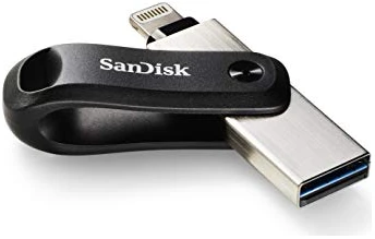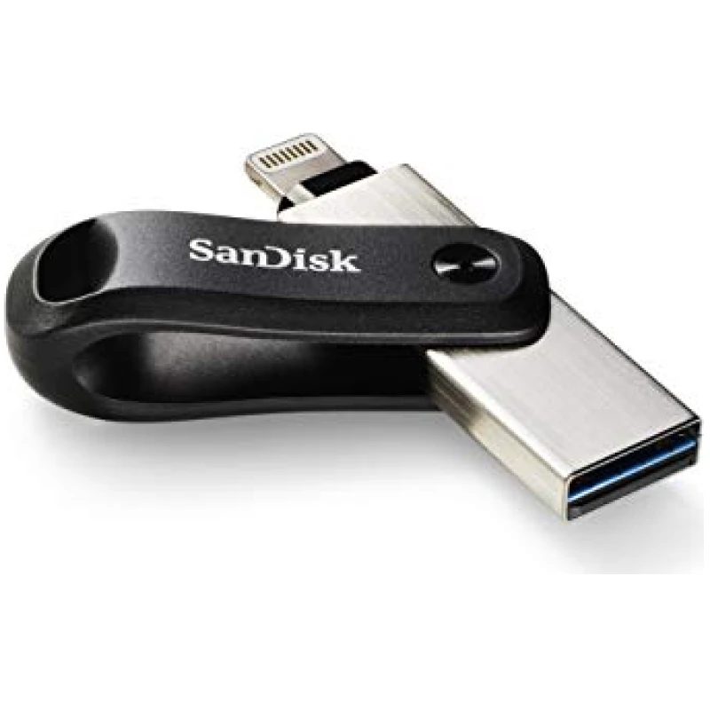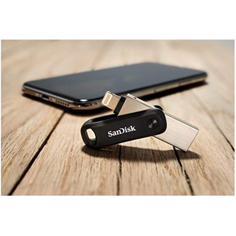 SANDISK iXpand Go Flash Drive, 128GB (2-in 1 iPhone storage, with lightning and USB 3.0 connectors, for iPhone, iPad, PC and Mac, Automatic Backup, iXpand app, Keychain) Black/Silver