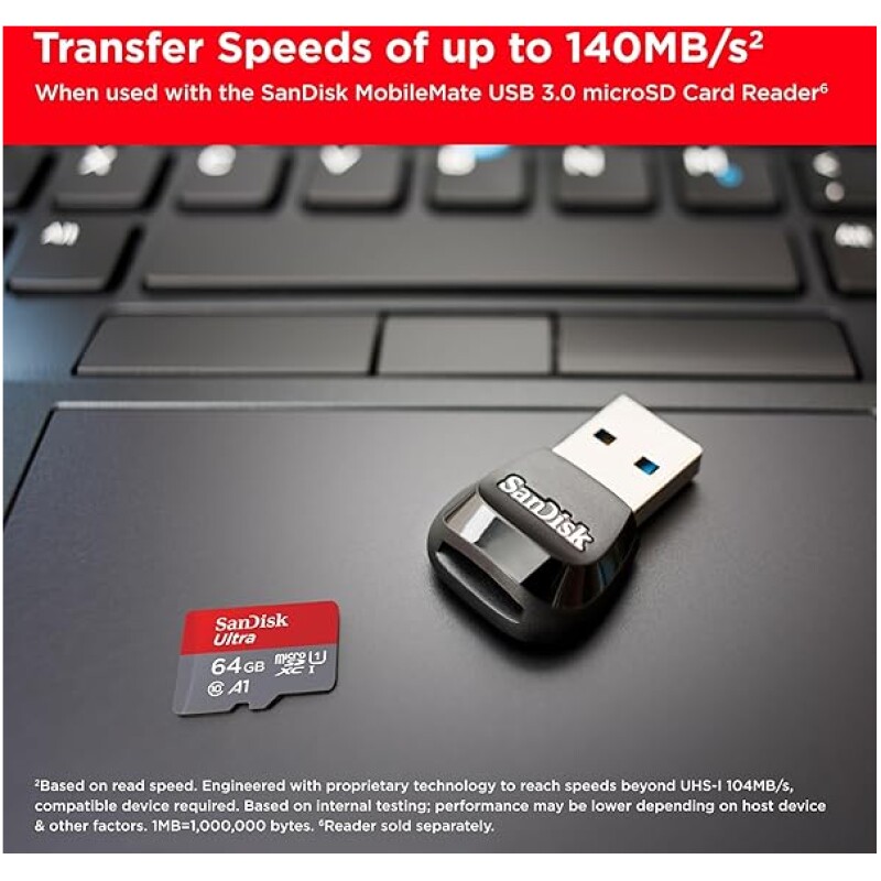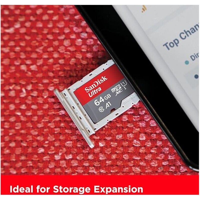 SanDisk Ultra micro SD card + SD adapter 64GB (For Android Smartphones and Tablets, Memory card up to 140 MB/s, A1 Faster App Performance, UHS-I, Class 10, U1)