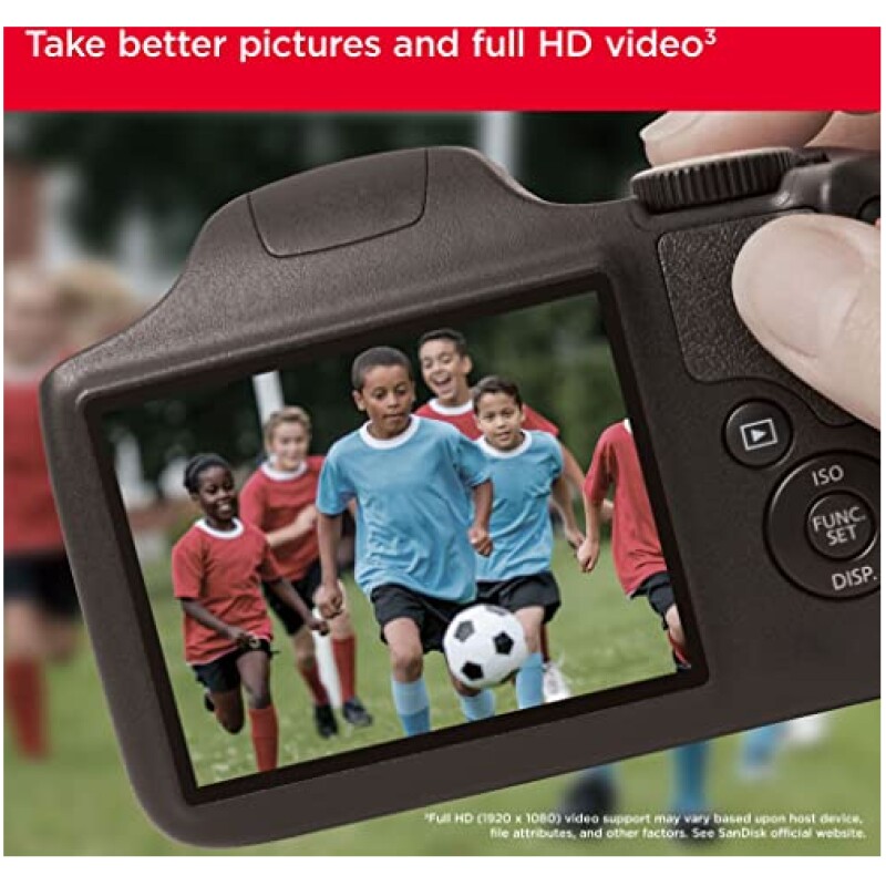 - Exceptional video recording performance with UHS Speed Class 1 (U1) Class 10 rating for Full HD video (1080p) (UHS Speed Class 1 (U1) designates a performance option designed to support real time video recording with UHS enabled host devices. See consumers speed page on SanDisk site; Full HD (1920×1080) video support may vary based upon host device, file attributes, and other factors; Visit the SanDisk Video Knowledge Base for more information.)