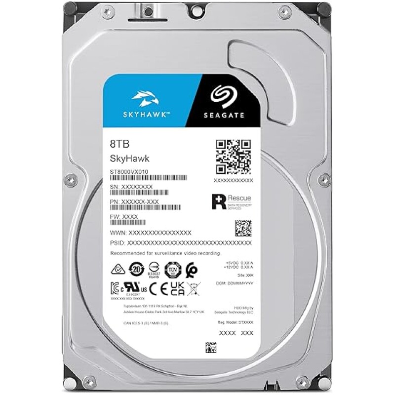 Seagate SkyHawk 8TB, Video Internal Hard HDD, 3.5", SATA 6Gb/s, 256MB Cache, for DVR NVR Security Camera System, with in-house Data Rescue Services, FFP (ST8000VXZ10)