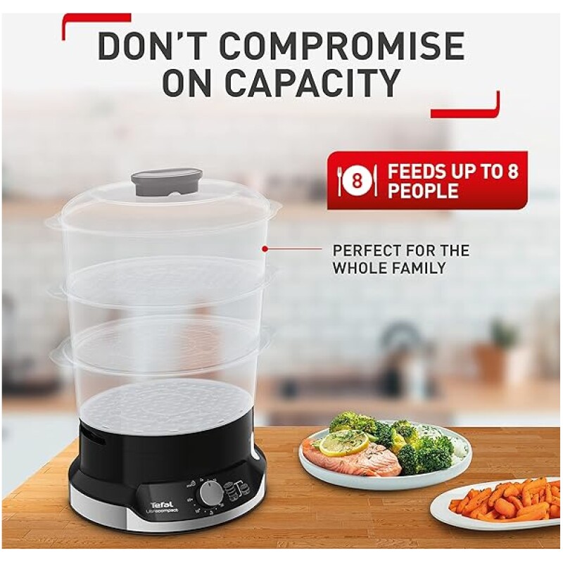- Perfect capacity: The large 9 L capacity 3-bowl multi-tier system uses three steaming bowls at once, saving time while offering enough for special occasions and everyday use