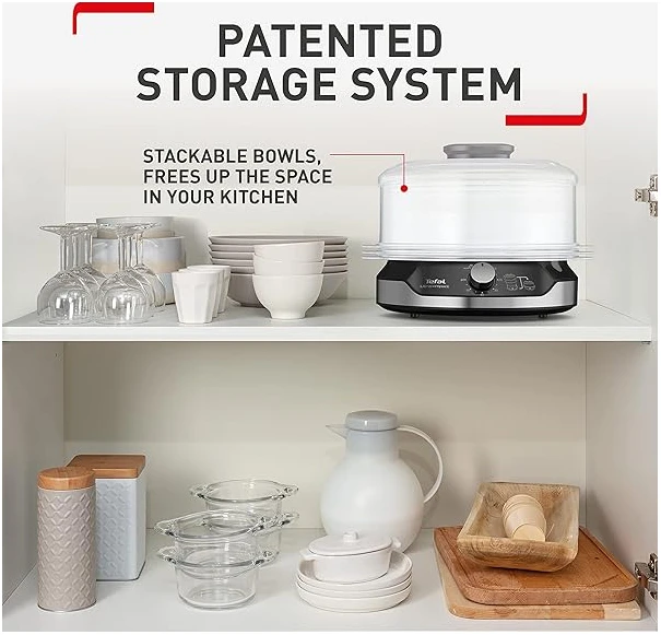 - Easy to store: A convenient steam cooker with a patented ultra-compact storage system with stackable bowls (including rice bowl) on the base