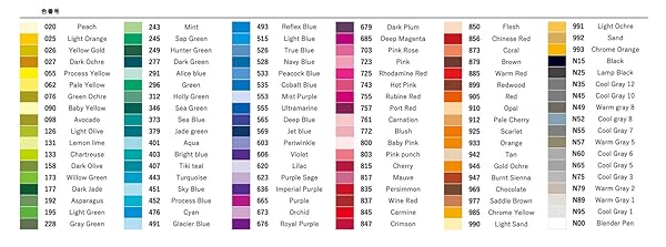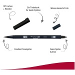 - Brush Pen with two tips, available in 107 colours + blender