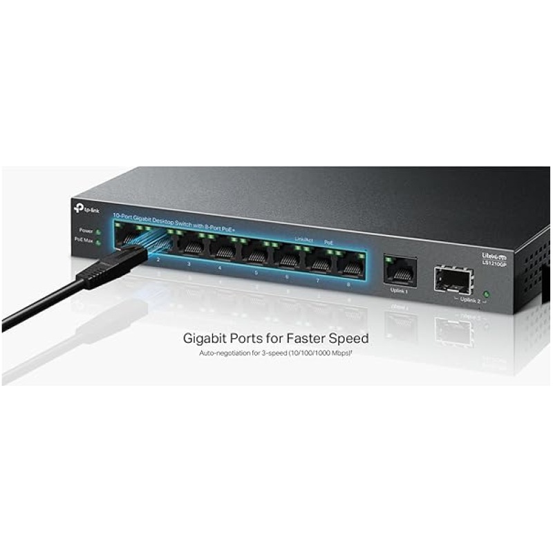 - Full Gigabit Ports: 9? gigabit auto-negotiation RJ45 Ethernet ports and 1? gigabit SFP port provide up to 20 Gbps switching capacity