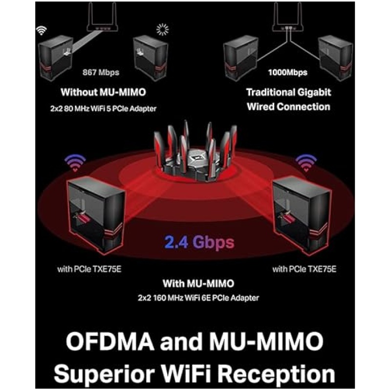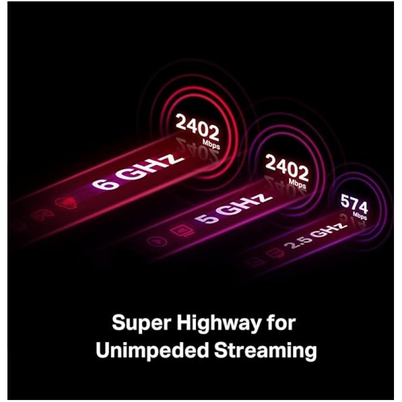 - Unparalleled Tri-Band Speed ? Boost your overall speeds up to 2402 Mbps (6 GHz) + 2402 Mbps (5 GHz) + 574 Mbps (2.4 GHz)