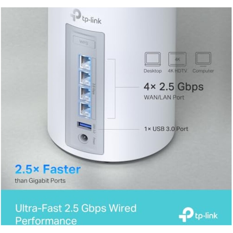 - 2.5 Gbps Wired Connections – 4× 2.5 Gbps ports ensure max flexibility and boosted throughput