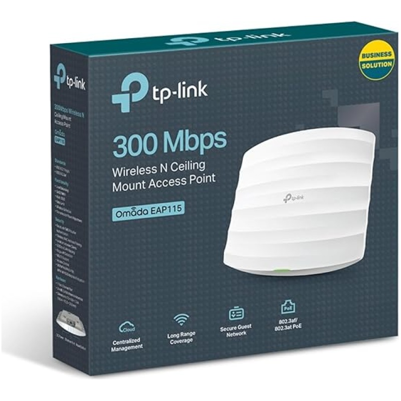 TP-Link EAP115 N300 Wireless Access Point, 300Mbps Access Points Support PoE 802.3af and Direct Current, Omada Mesh, Easy Setup, Centralized Cloud Management, Easily Mount to Wall or Ceiling