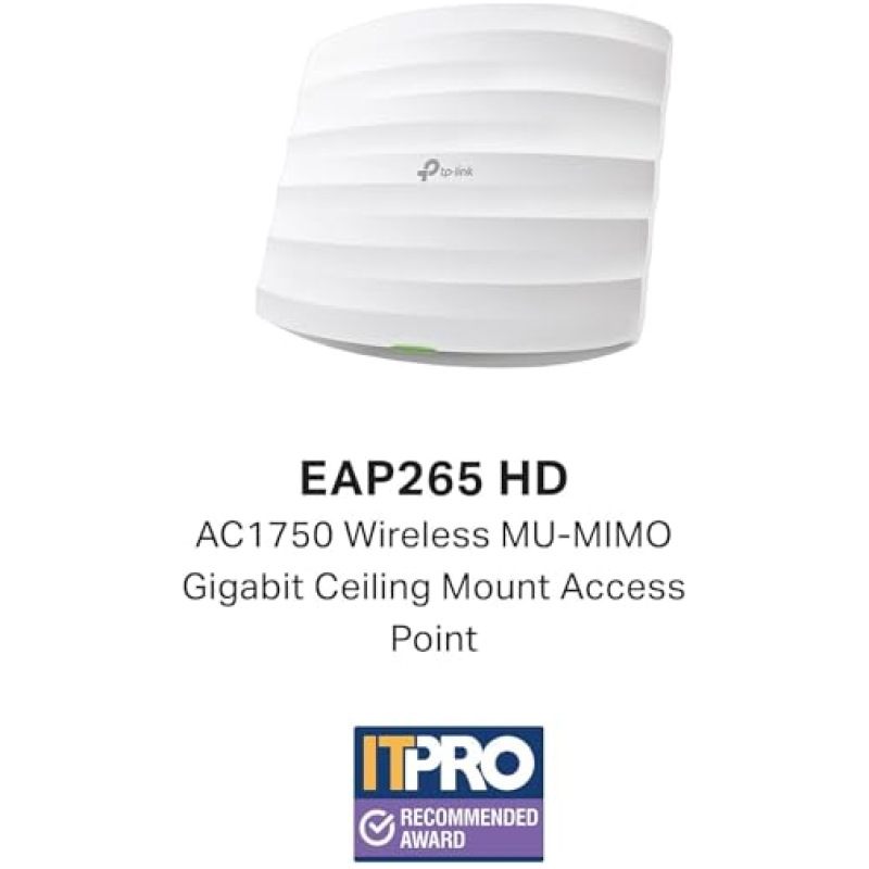 TP-Link EAP265 HD Access Point, AC1750 Wireless Access Points, Dual-Band WiFi MU-MIMO Gigabit Ceiling Mount, Omada Mesh, Easily Mount to Wall or Ceiling, Free EAP Controller Software