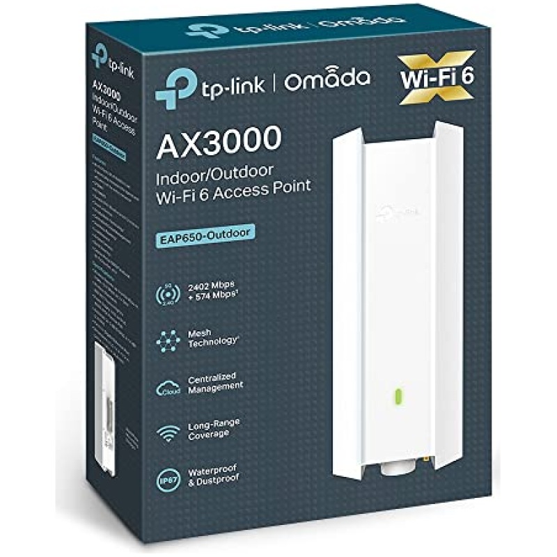 TP-Link EAP650-Outdoor WiFi 6 Access Point, AX3000 Dual Band Gigabit Wireless Access Points, Omada Mesh, PoE+ Powered, Indoor Outdoor Weatherproof, Seamless Roaming Extended Range, Cloud Management