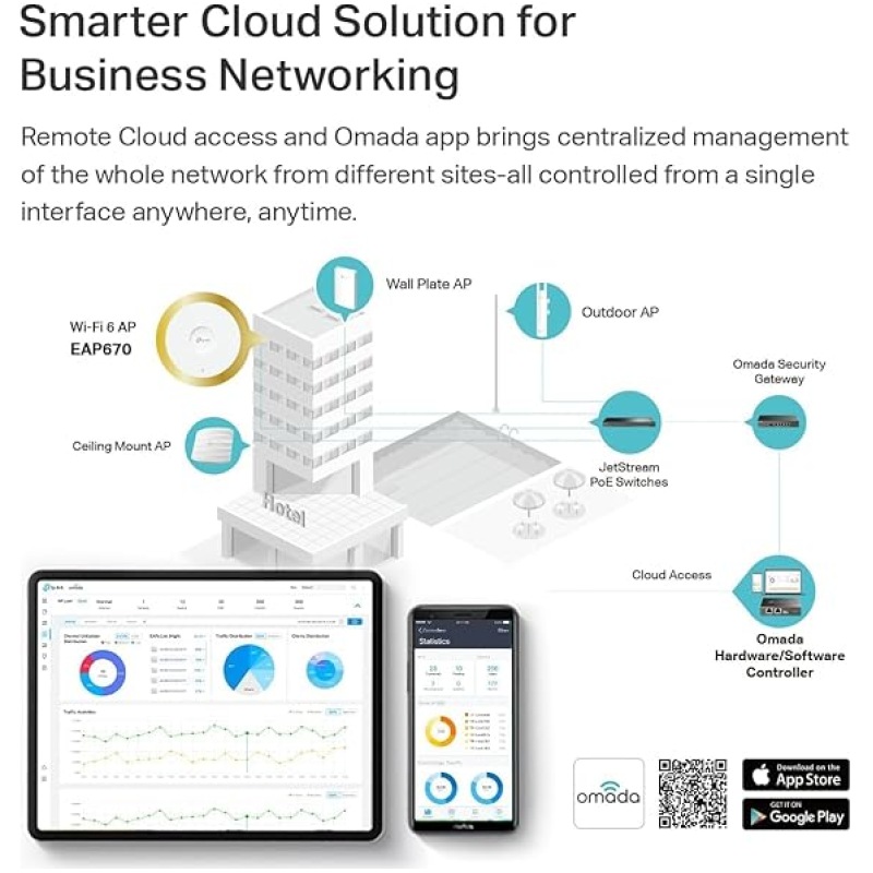TP-Link EAP670 WiFi 6 Access Point, AX5400 Gigabit Wireless Access Points, Omada Mesh, PoE+ Powered 802.3at PoE+ or DC, Seamless Roaming, Easily Mount to Wall or Ceiling, Centralized Cloud Management