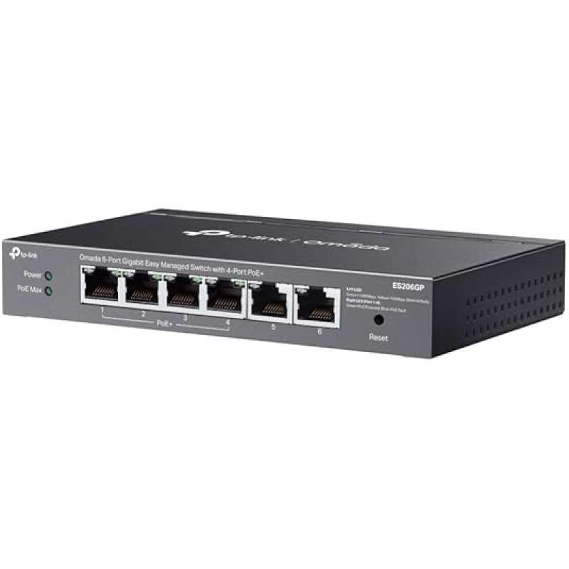 TP-Link ES206GP 6 Port Gigabit PoE Network Switch, 4x PoE+ Ports, 65W Total Budget, Network Switch, Omada Ethernet Switch, Ethernet Splitter, Metal Case, Easy Cloud Managment, Silent operation