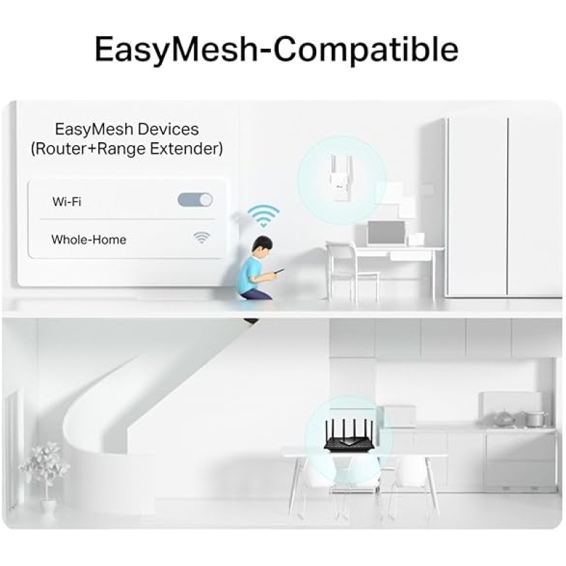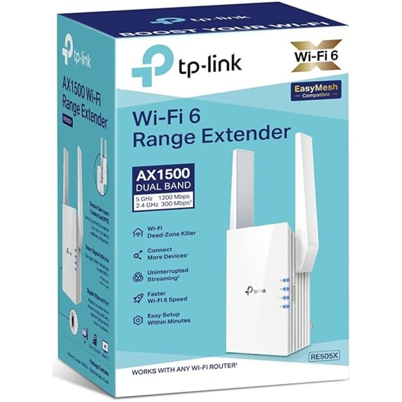 TP-Link Mesh WiFi 6 Booster, WiFi Repeater, Ultraxtend WiFi Range Extender with 1 Gigabit Port, 1500Mbps Internet Repeater, 5GHz, App Control Easy Setup, UK Plug (RE505X)