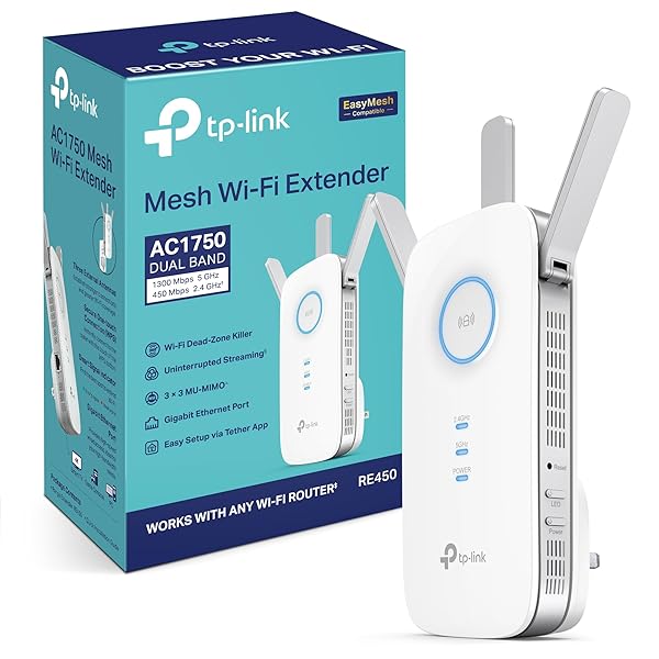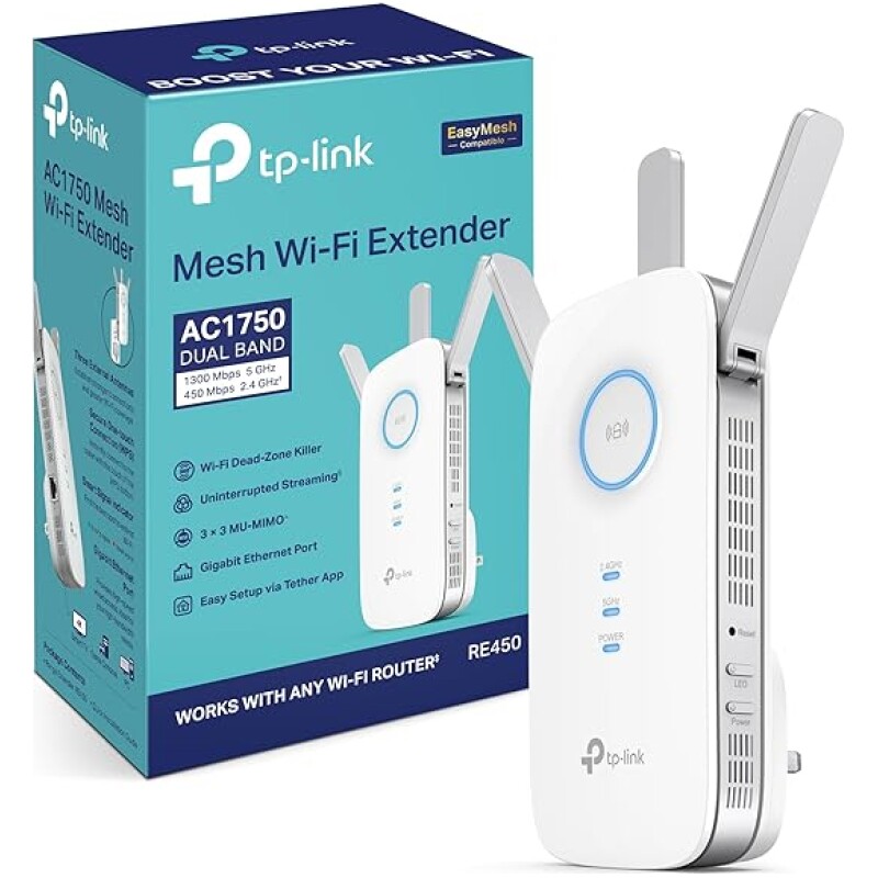 TP-Link RE450 AC1750Mbps Dual-Band WiFi Extender Booster, Simultaneous 450Mbps on 2.4GHz + 1300Mbps on 5GHz, Range Extender Hotspot with 1 Gigabit Port and 3 External Antennas, Access Point Mode