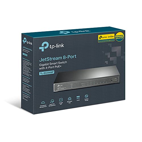 TP-Link SG2008p 8 Port Gigabit PoE Switch, 4? Gigabit PoE Ports, 802.3af-at 30W, 62W Total Budget, Network Switch, Power Saving, Plug & Play, Metal Case, Ethernet Switch, Ethernet Splitter