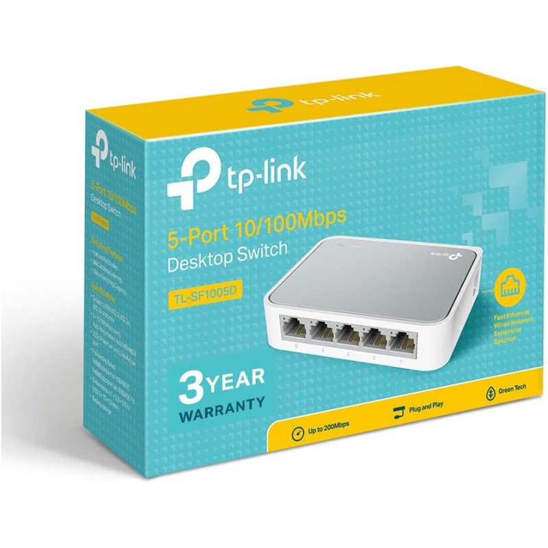 TP-Link TL-SF1005D 5-Port 10/100 Mbps Desktop Ethernet Switch/Hub, Ethernet Splitter, Plug & Play, no configuration required