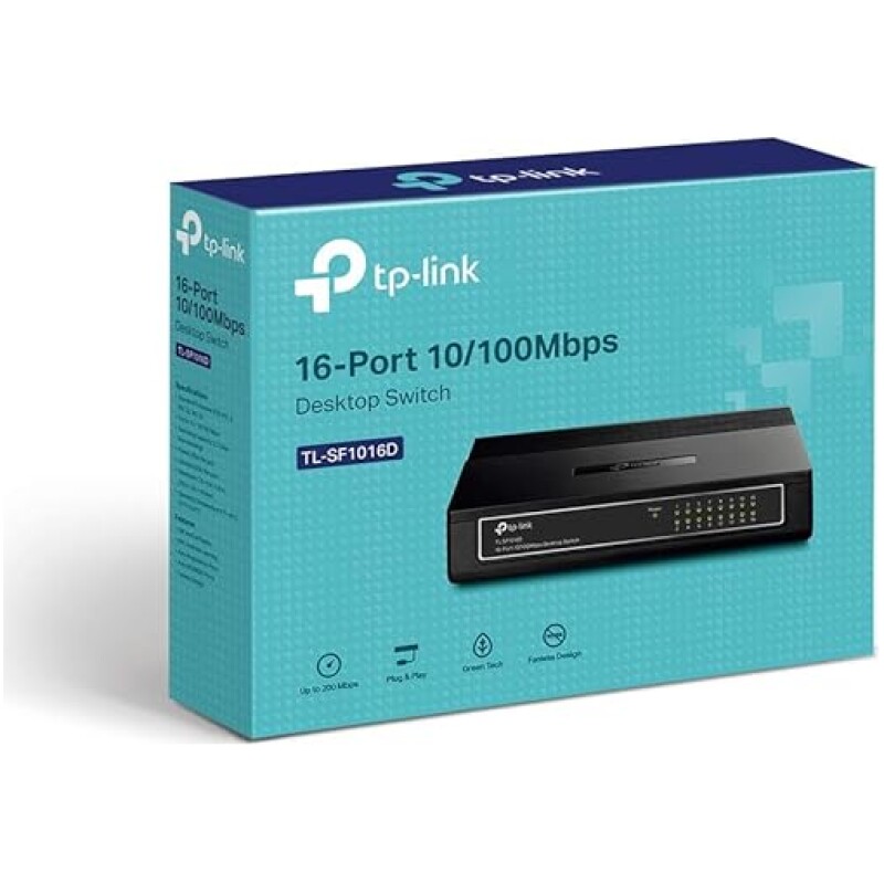 TP-Link TL-SF1016D 16-Port 10/100 Mbps Desktop Ethernet Switch/Hub, Ethernet Splitter, Plug & Play, no configuration required, Black