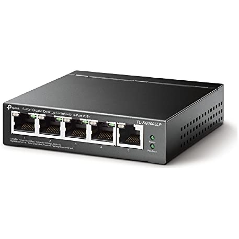 TP-Link TL-SG1005LP 5 Port Gigabit PoE Switch, 4? Gigabit PoE+ Ports, 802.3af/at 30W, 40W Total Budget, Network switch, Power Saving, Plug & Play, Metal Case, Ethernet Switch, Ethernet Splitter