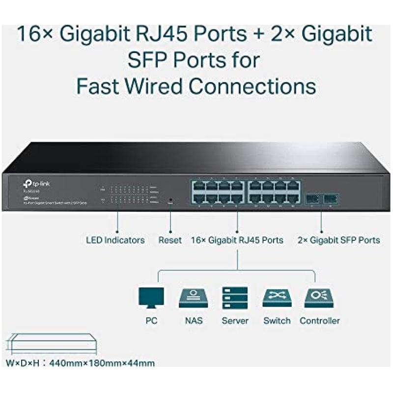 TP-Link TL-SG2218 18 Port Gigabit Smart Switch, 16? Gigabit RJ45 ports and 2? Gigabit SFP slots, Network Switch, Power Saving, Plug & Play, Metal Case, Ethernet Switch, Ethernet Splitter