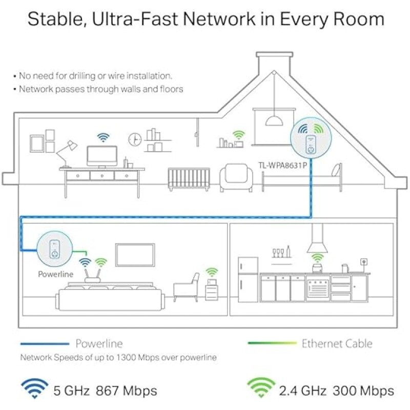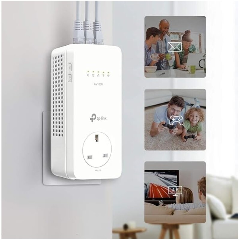 TP-Link TL-WPA8631P AV1300Mbps WiFi Extender Booster, Dual-Band WiFi Extender, 3x Gigabit Ports, Gigabit Passthrough Powerline Up To 867 Mbps on 5 GHz and 300 Mbps on 2.4 GHz, 2x 2 MIMO, Plug & Play