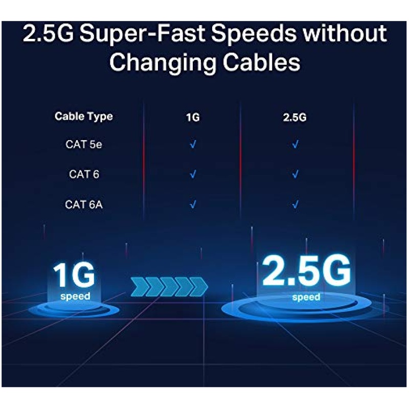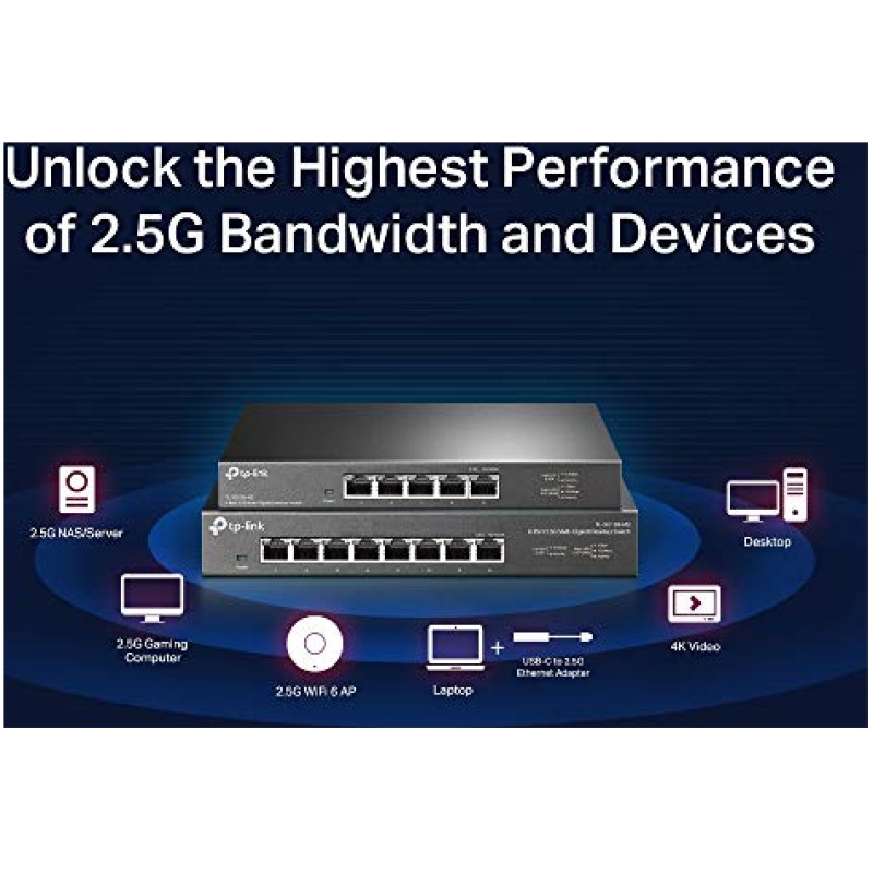 - Five 2.5 Gbps Ports: 5? 100Mbps/1Gbps/2.5Gbp Ports unlock the highest performance of your Multi-Gig bandwidth and devices, and provide up to 25 Gbps of switching capacity