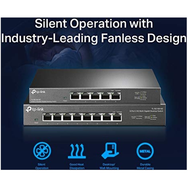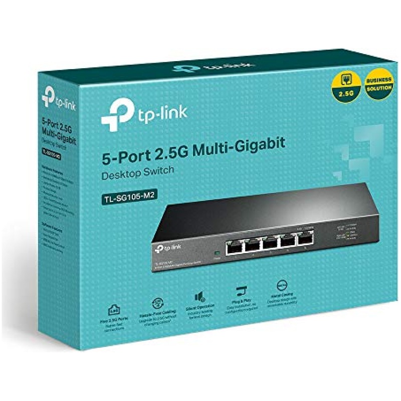 TP-Link Unmanaged 5-Port 2.5G Multi-Gigabit Desktop Switch, 802.3X Flow Control, 802.1p/DSCP QoS, Ideal for Small and Home Office with fanless design, Metal Casing, Plug and Play (TL-SG105-M2)