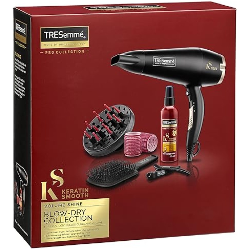 TRESemme Keratin Smooth 2200W Volume Shine Hair Dryer Gift Set, Diffuser Dryer, paddle brush, hair rollers, ionic conditioning